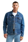 Classic denim jacket, chest pockets with metal snap closures, front side welt pockets, W stiching on pockets.