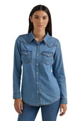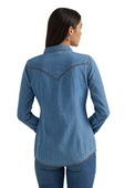 Classic fit denim shirt, snap closure, western pockets, western front and back yokes, W stitching on pockets.