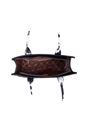 Cow Pattern Print TrimWhipstitch Detailing Top Zip ClosureCarry Handles