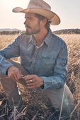 Classic fit denim shirt, snap closure, Western pockets (one with pen holder), Western front and back yokes, W stitching on pocket.